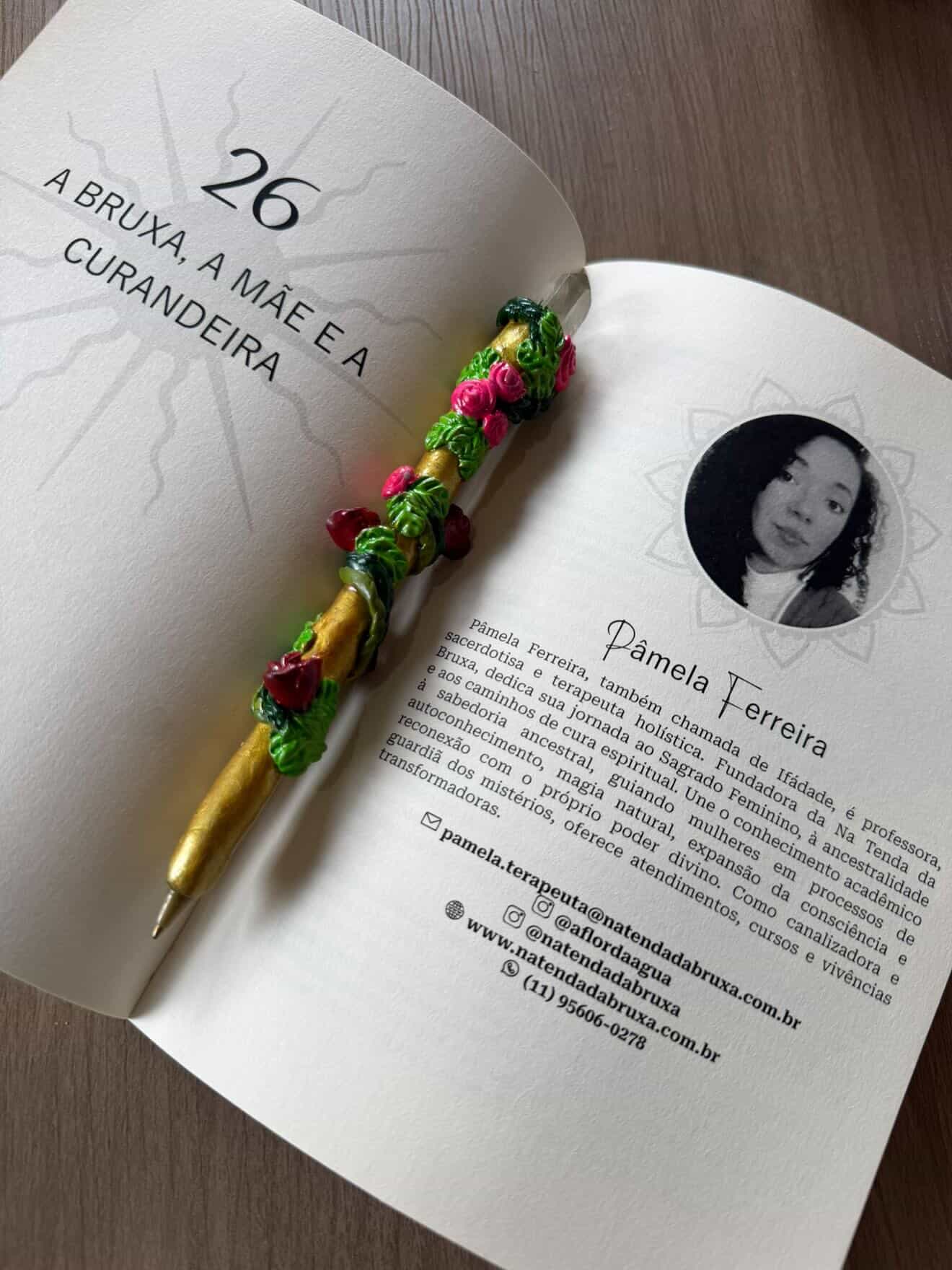 Sua atuação une conhecimento acadêmico, espiritualidade, ancestralidade e prática terapêutica, trazendo uma abordagem profunda, ética e acolhedora para cada processo conduzido NA Tenda da Bruxa.